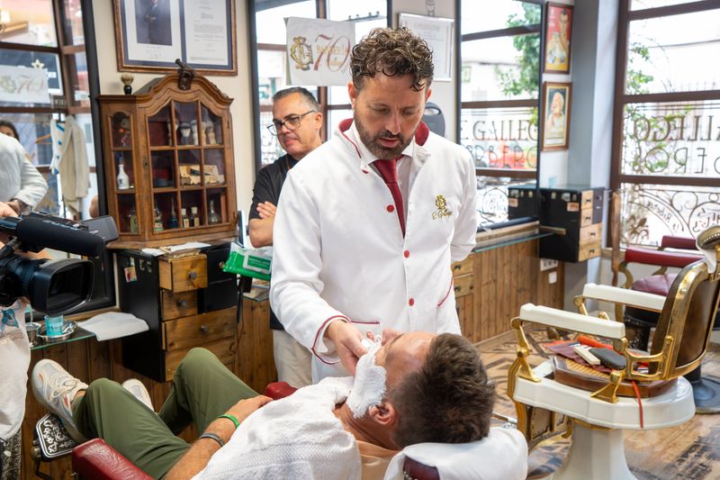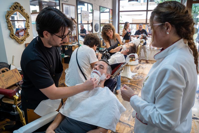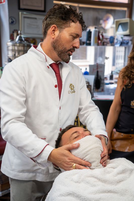 Todo empezó por la inquietud de conocer el afeitado italiano auténtico y compararlo con el estilo español que practicaba mi padre. Un video me inspiró tanto que decidí cerrar la barbería una semana para irnos todo el equipo, junto a mi padre, a un rincón recóndito de la Puglia italiana llamado Bovino. Allí aprendimos con los Scapicchio, una de las familias de barberos más antiguas del mundo. Aquel viaje lo cambió todo.